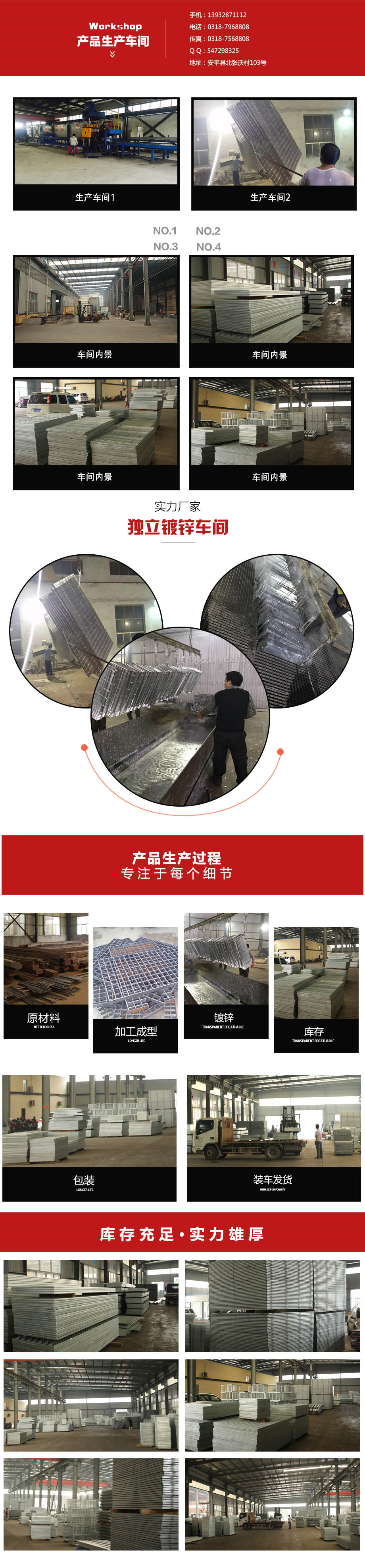 多臺(tái)檢測(cè)設(shè)備和精良的加工工藝,生產(chǎn)制造鋼格板。主要生產(chǎn)熱鍍鋅鋼格板、熱鍍鋅鋼格柵板、鍍鋅鋼格柵、鍍鋅格柵板、熱鍍鋅格柵板、平臺(tái)鋼格板、格柵板、蓋溝板、鋼格板等。廣泛用于;石油、化工、港口、電力、運(yùn)輸、造紙、鋼鐵、市政、房地產(chǎn)、制造業(yè)等各個(gè)領(lǐng)域。我們集科研、生產(chǎn)、銷售、服務(wù)為一體,多年來(lái)致力于鋼格板的制作和研發(fā),技術(shù)力量雄厚,擁有成熟的工藝以及豐富的鋼格板生產(chǎn)和安裝經(jīng)驗(yàn)。